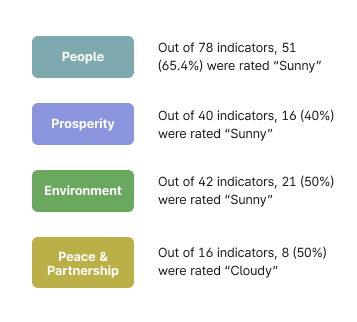 The K-SDG indicator assessment employs a distinctive “Progress Toward Targets” framework, which evaluates each indicator’s progress toward achieving the 2040 targets based on trend analysis. Progress is illustrated through the analogy of weather forecasts, presented in four levels: